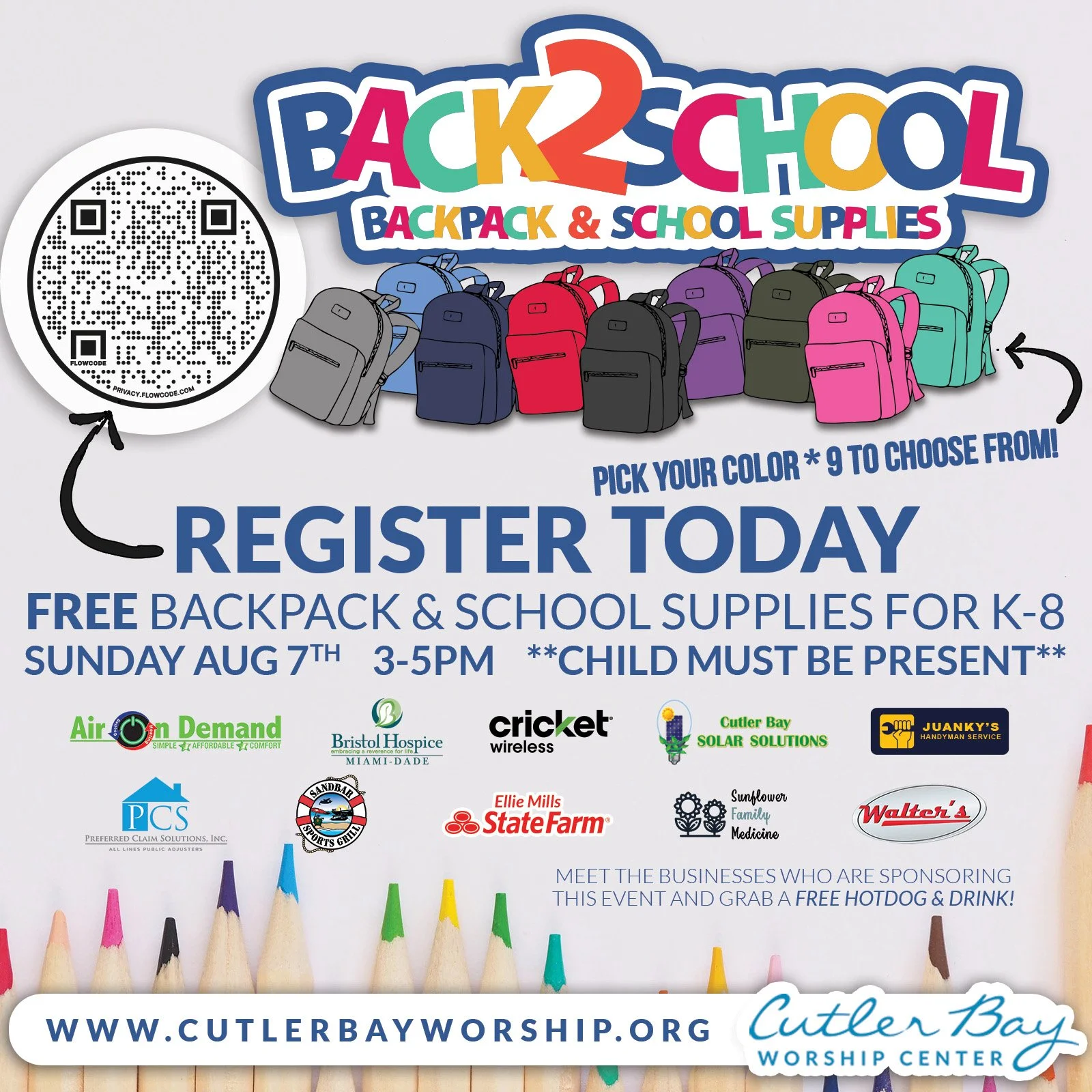 We want to ensure that everyone who comes gets what they need, so, by having you register we are ensuring that when you come, there will be a backpack for your children!
