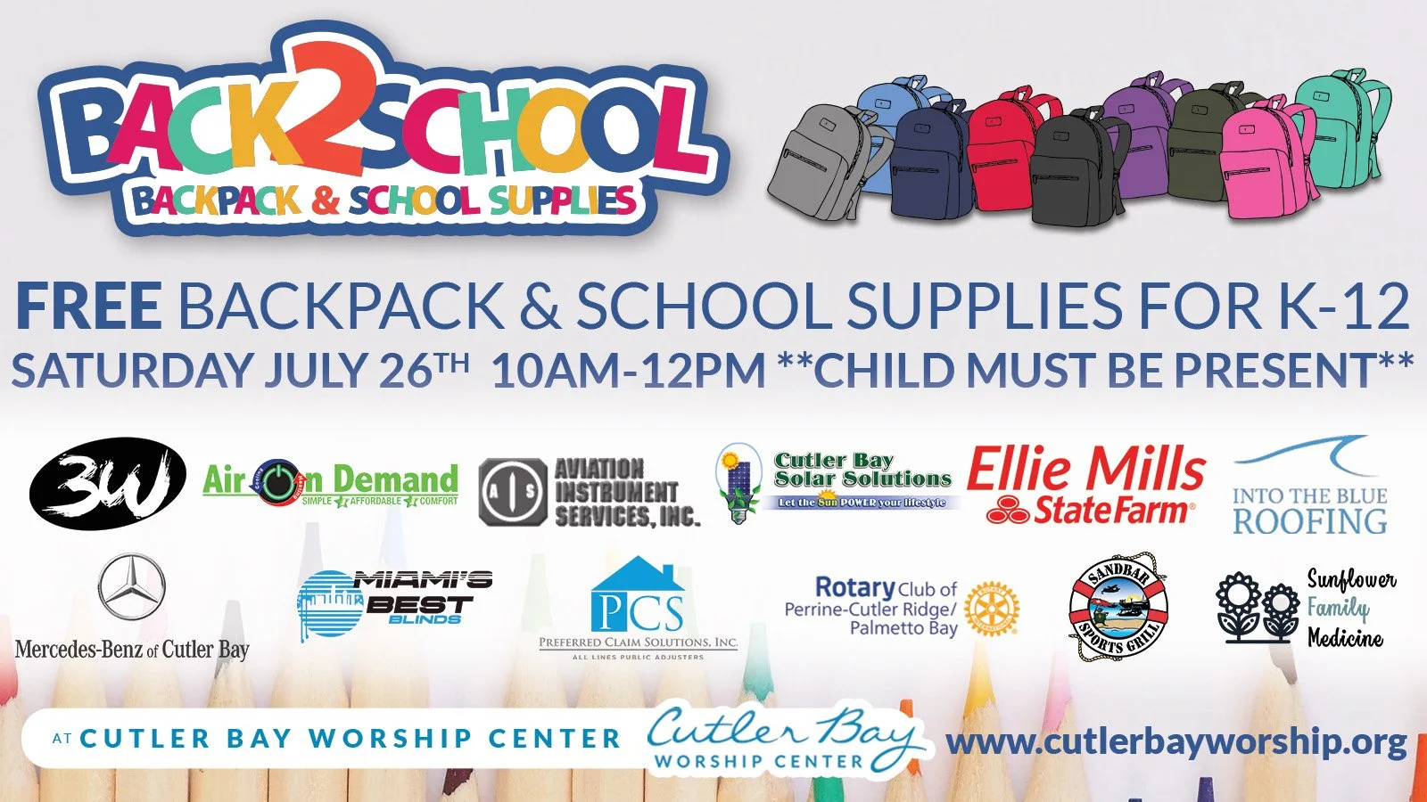 We have partnered with local businesses in our area to get your kids the backpack and school supplies they need for this coming year!